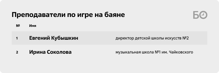 Вот те, кто учит детей играть на клавишно-пневматических язычковых музыкальных инструментах, к которым относятся баян, аккордеон, гармонь. Директор детской школы искусств №2, преподаватель по классу баяна и аккордеона Евгений Кубышкин продолжает растить виртуозов, отмечают эксперты, которые сыграют «что хотите, в любом темпе, даже с космической скоростью». Кубышкин в хорошем смысле обладает музыкальным фанатизмом, которому доверяют родители. Его известные ученики: Умар Бикбаев — дважды лауреат конкурса-фестиваля Гарифуллиной, аккордеонист Никита Сурков — стипендиат мэра Казани, отмеченный престижным фондом «Новые имена».