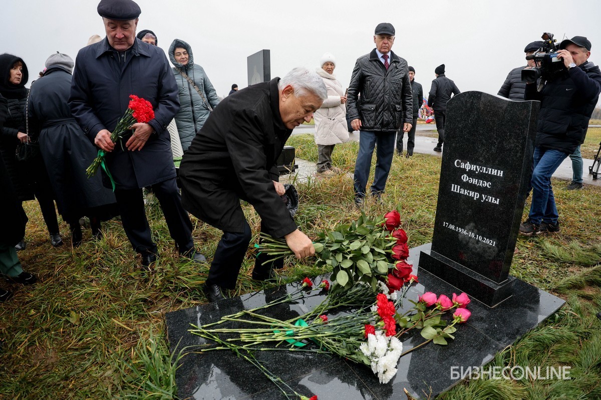 Завершилась церемония возложением цветов к могиле, а затем неожиданно экс-депутат Госсовета РТ Сурия Усманова предложила Мухаметшину почтить память и лежавшего рядом общественного деятеля, депутата Госсовета РТ и Госдумы Фандаса Сафиуллина. Фарид Хайруллович безоговорочно согласился.