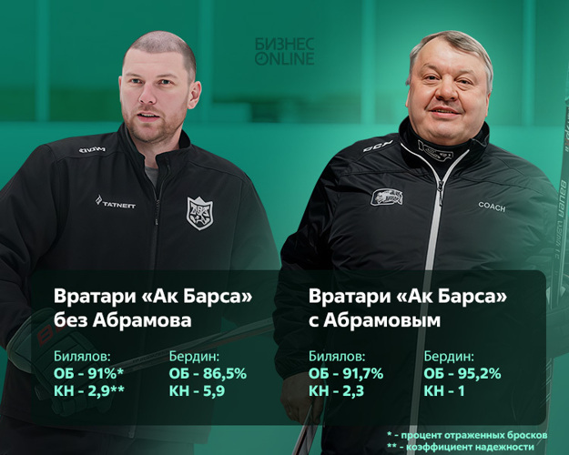 Примерно та же ситуация была в сезоне 2022/23. Абрамов не входил в тренерский штаб Олега Знарка и не участвовал в тренировках. Когда в команду вернулся Билялетдинов, то одним из первых решений наставника было вернуть Абрамова. Это моментально дало результат: Тимур выиграл 9 из 10 матчей, оформил два «сухаря» и отражал по 96,7% бросков. Тренера не назвать сильнейшим с точки зрения тактики и аналитики, но успокаивать вратарей он точно умеет.