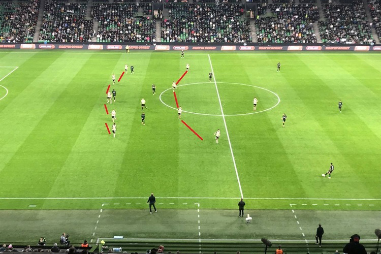 К игре «Рубин» подошел с огромными проблемами в оборонительной линии. Не только из-за качества игры защитников, но и из-за количества игроков на матч. Егор Тесленко пропускал матч из-за дисквалификации, Игор Вуячич — из-за травмы. В обойме из основной тройки оставался Илья Рожков, который в принципе номинально не центральный защитник, а крайний. А еще Алексей Грицаенко, игра которого в последнее время заставляет хвататься за голову из-за ошибок, вызывающих недоумение. Посадить Алексея на лавку Рахимов не мог — некем заменить. На неделе в матче с «Ахматом» (3:3, 4:3 пен) Грицаенко был заменен уже в перерыве. Нам известно, что утром после матча тренер вызвал игрока в кабинет для индивидуальной беседы. Краткий посыл того разговора — что с уверенностью в своих силах?