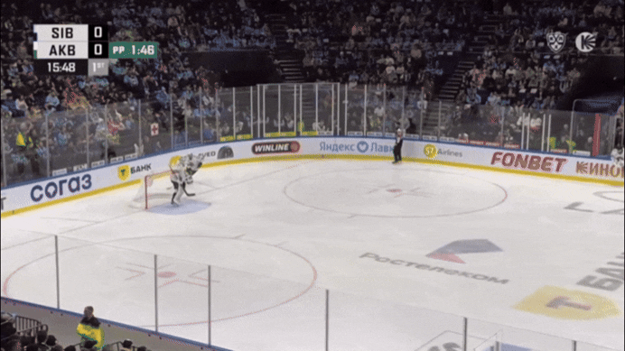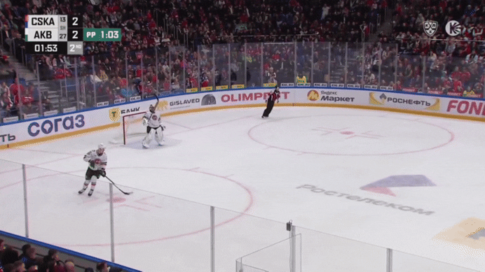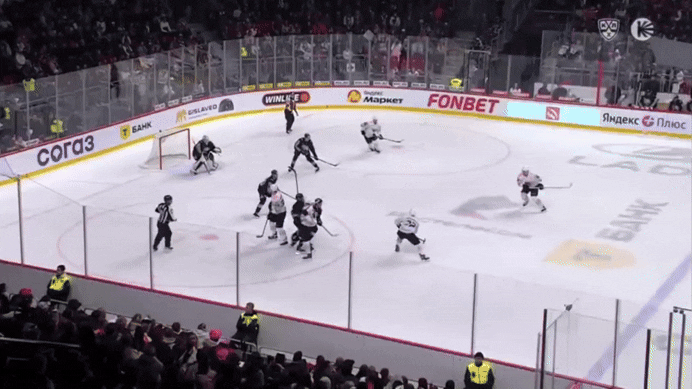 Интересно, что эта идея пришла в КХЛ из НХЛ. Активнее всего ею пользуется «Авангард» (лучшее большинство в лиге с 35,7% реализации). На моменте ниже защитник Дамир Шарипзянов наносит бросок из неудобного положения.
