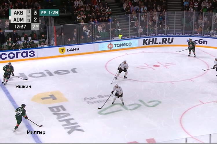 Активны у «Ак Барса» защитники. Их не ограничивают в действиях и дают вот так завозить шайбу в зону. Например, Миллер просто проехал с одной зоны в другую — не понадобилось тратить время на вход.
