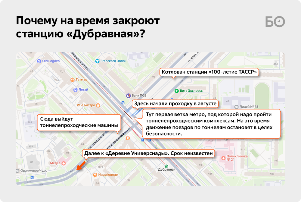Теперь власти города, АО «Казметрострой», МУП «Метроэлектротранс», ГУП «Татинвестгражданпроект» готовятся к временному закрытию станции метро «Дубравная». В пресс-службе исполкома сегодня сообщили, что станция закрывается с 3 ноября.