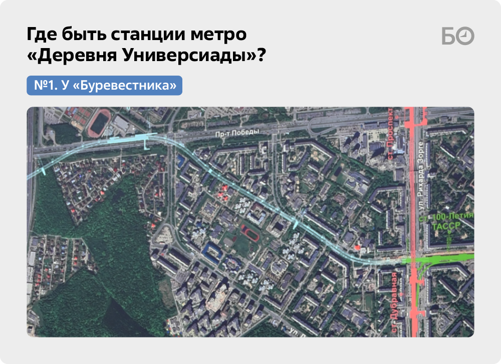 «Метро — дотационный вид транспорта, и оно живет только за счет проходов людей. Тысяч, сотен тысяч, — размышляет в беседе с „БИЗНЕС Online“ заслуженный архитектор РТ, советник по градостроительству и архитектуре компании „Ак Барс Девелопмент“ Дмитрий Пузырев. — На первый взгляд, как будто бы хочется поставить станцию со стороны Деревни Универсиады. Потому что, как мне кажется, там поток пользователей будет больше. Но я не специалист по транспортному моделированию, это не профессиональный мой ответ, а ответ простого горожанина».