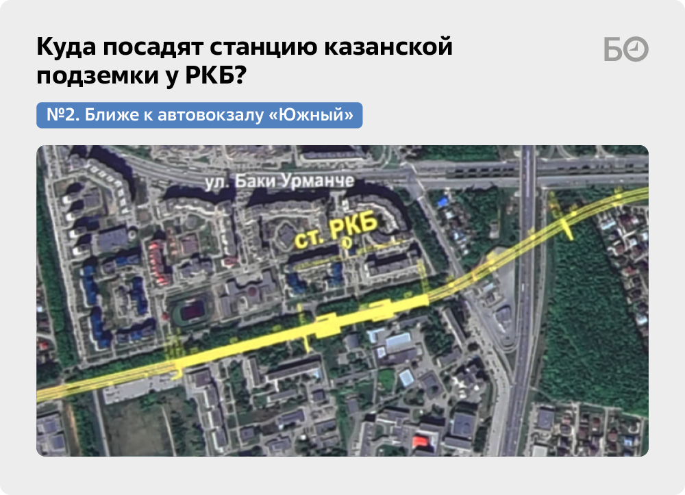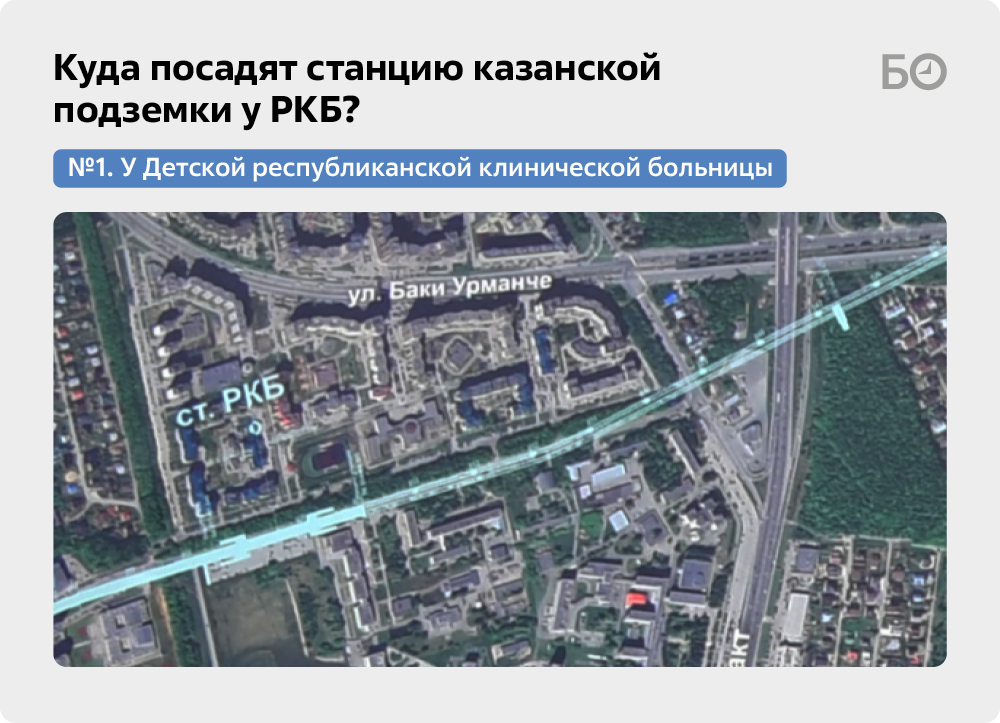 Наиболее оптимальным называют вариант размещения станции метрополитена около ДРКБ в Институте развития Казани. «Территория Приволжского района Казани, вблизи РКБ, активно застраивается и будет продолжать развиваться, — заявили в учреждении в ответ на запрос „БИЗНЕС Online“. — Именно по этой причине станции метрополитена должны располагаться так, чтобы максимально обеспечить пешеходную и транспортную доступность не только для жителей сложившейся застройки, но и тех, кто планирует жить на данной территории. По этой причине вариант размещения станции метрополитена около ДРКБ Институт развития Казани считает наиболее оптимальным».