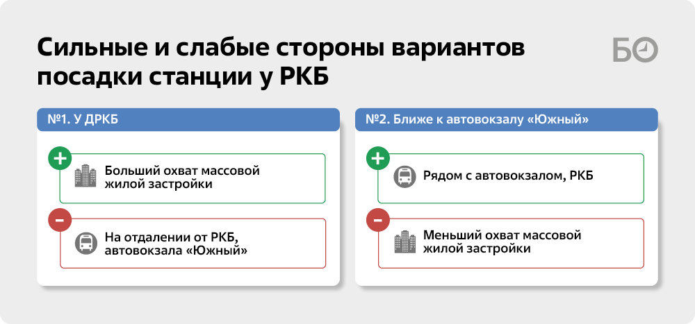 «С одной стороны, нужно обеспечить удобный транспортно-пересадочный узел, — рассуждает Тиняев. — Поэтому станцию нужно расположить ближе к автовокзалу „Южный“, чтобы плечо пешеходного перехода было короче. С другой стороны, станцию нужно сделать удобной для пассажиропотока в РКБ. Но на пересадку к автовокзалу пассажиропоток идет значительно больший, чем в это медицинское учреждение. Поэтому я бы, наверное, „поставил“ станцию ближе к перекрестку».