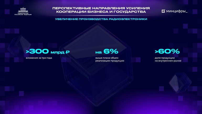 Еще одна важная сфера — радиоэлектронная промышленность. За три года в отечественную электронику вложили более 300 млрд рублей, утвердили концепцию развития испытательных полигонов и распределенной лаборатории для опытной эксплуатации серийного оборудования. Уже сейчас ведется создание отдельных продуктовых линеек цифровой и цифро-аналоговой микроэлектроники, СВЧ-электроники, а также изделий фотоники — лазеров, лидаров, трансиверов, терминалов космической лазерной связи и др.