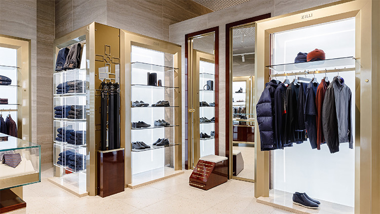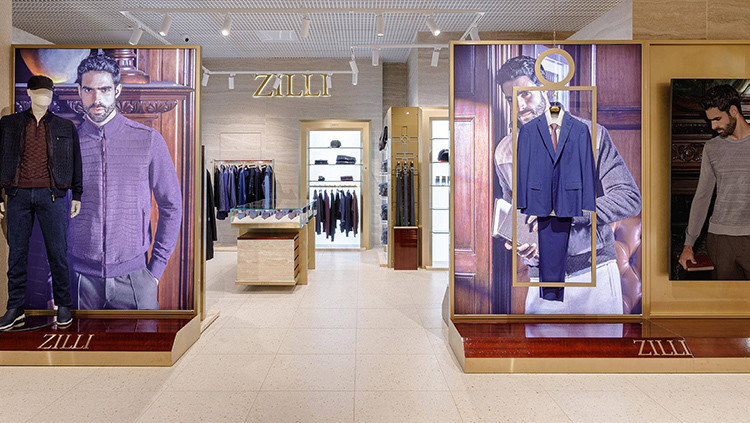 Luciano представляет также французский бренд для мужчин Zilli. Марка специализируется на экзотических кожах (крокодил и страус). Здесь можно приобрести обувь и аксессуары из новой коллекции, а также верхнюю одежду, классические костюмы из натуральных тканей, трикотаж и составить гардероб на каждый день.
