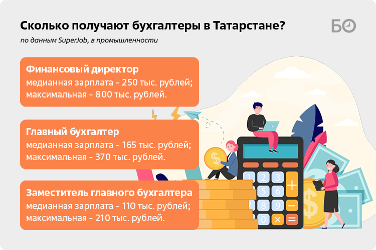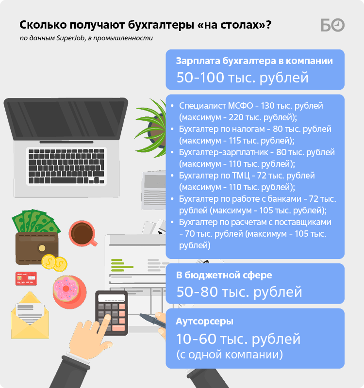 Специалисты, от которых в большой степени зависит финансовое здоровье компании, не могут зарабатывать мало. Согласно статистике сервиса Superjob, медианная зарплата финансового директора в промышленности составляет 250 тыс. рублей (максимальная — 800 тыс. рублей), а главного бухгалтера — 165 тыс. рублей (максимальная — 370 тыс. рублей). Заместитель бухгалтера в среднем зарабатывает 110 тыс. рублей (максимум — 210 тыс. рублей.