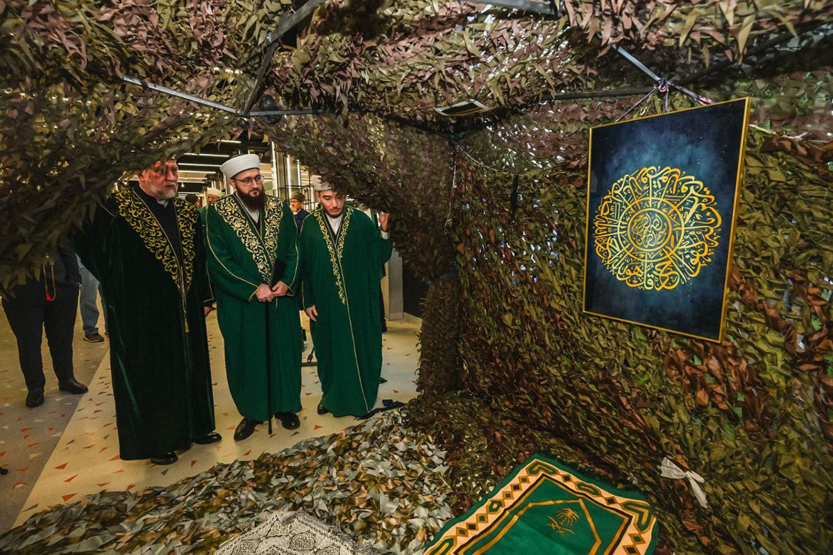 Интересным на выставке был также муляж блиндажной (подземной) мечети — такие помещения в разных точках фронта организуются при поддержке ДУМ РТ. Первую подземную мечеть на передовой в зоне СВО соорудил в январе при поддержке командования на месте постоянной дисклокации батальона «Батыр» полковой имам Мухаммад хазрат. Всего на его счету 3 подземные мечети. Его примеру последовал еще один полковой имам ДУМ РТ в батальоне «Алга» Руслан Агмалов, а также мобилизованный имам из Чистополя Ильфак Зулькарнаев, которому оказал содействие Нижнекамский мухтасибат ДУМ РТ. Таким образом, всего хазраты соорудили 5 блиндажных мечетей на фронте.