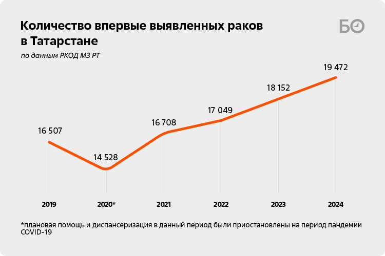 Собеседники издания говорят, что недостаточно. Причин тому несколько, самая очевидная из них — растущее количество онкобольных. На сегодня в раковом регистре республики — 127 тыс. человек, 60,4% из них состоят на учете пять и более лет, все эти годы они находятся под наблюдением специалистов, проходят те или иные процедуры, многие получают лечение. И регистр этот пополняется ежегодно. В 2024-м, по данным татарстанского минздрава, было впервые выявлено 19,5 тыс. случаев злокачественных новообразований — на 7,3% больше, чем в 2023-м (18,15 тыс.). В первичных онкологических кабинетах только за прошлый год осмотрели 190,3 тыс. человек.