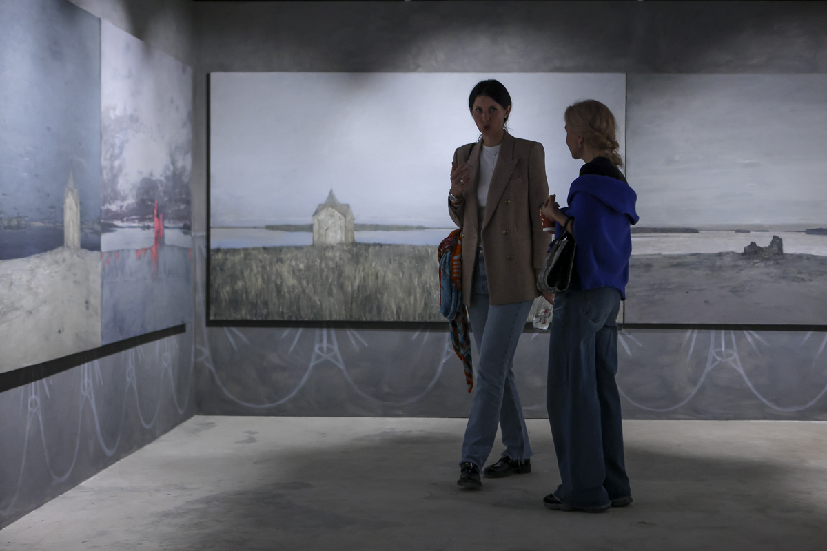 Здесь же рядом нижегородская галерея FUTURO. Она представила серию живописных работ Сергея Карева «Русский Край» — фризовую композицию из девяти картин об отрешенном созерцании круговорота разрушения и становления.