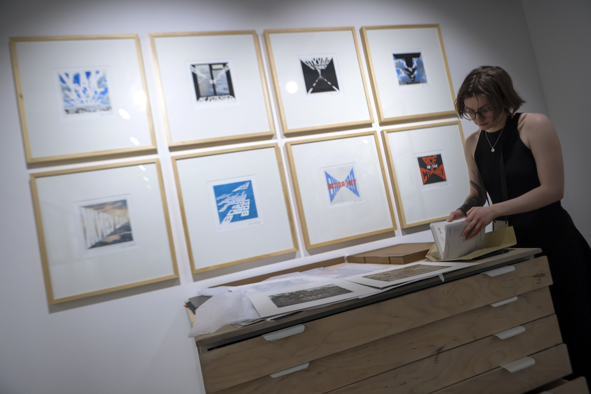 Соседями «БИЗОN’а» стали галереи «ПиранезиLAB», VS Gallery и FUTURO. Первая, совместно с «Мультимедиа Арт Музеем», представляет на стенде печатное искусство двух художников — Эрика Булатова и Никиты Алексеева. Портфолио 12 гелиогравюр Булатова было издано в 2024 году. Напомним, 5 сентября крупнейшему представителю советского и российского концептуализма исполнилось 92 года, и он возглавил топ-50 самых дорогих здравствующих художников от The Art Newspaper Russia. 9 ноября Булатова не стало. Как рассказала директор «ПиранезиLAB» Арина Левандовская, стоимость портфолио Булатова оценена в 3 млн рублей.