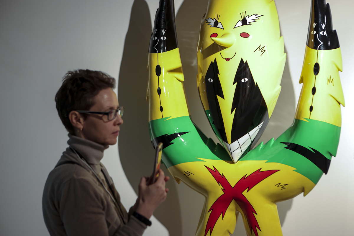 Одним из самых посещаемых стендов ярмарки стал стенд pop/of/art gallery. Как рассказал сам основатель галереи, искусствовед Сергей Попов, день-превью стал очень удачным. «Большинству людей нравится новая локация и мы выглядим здесь достаточно респектабельно. Люди могут заходить в разные отсеки и спокойно знакомиться с искусством без ярмарочной суеты. Раньше было так, что люди гуляют и даже не заходят на стенд. Но сегодня у нас есть целый ряд продаж и большой интерес от различных институций, а не только от частных коллекционеров», — рассказал он.