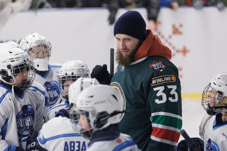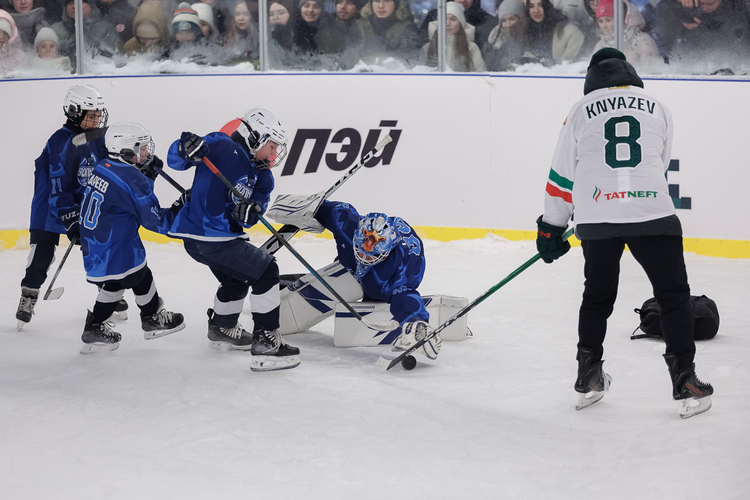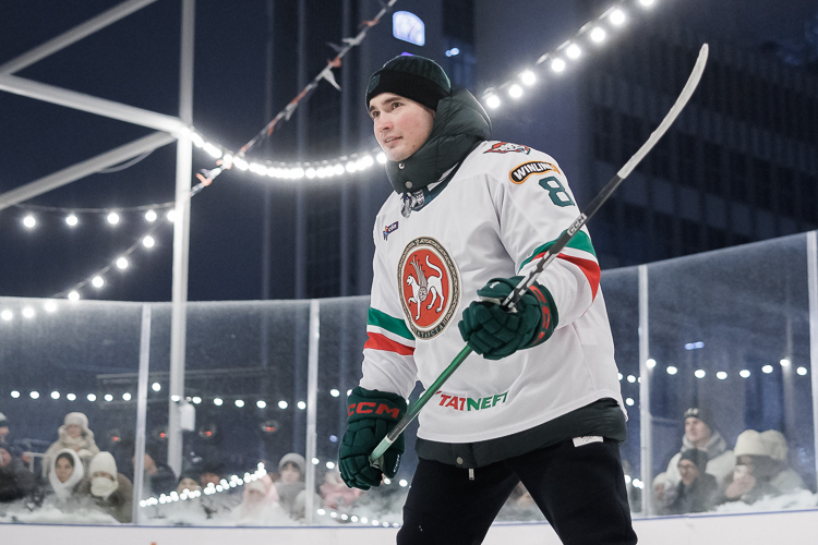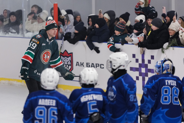 На лед вышли игроки «Ак Барса» Артур Бровкин, Артемий Князев, Радэль Замалтдинов и Семен Терехов. Первые двое выступали за белых, а вторые — за синих. Их поддерживал Альберт Яруллин: он восстанавливается после травмы, а потому играть не мог.