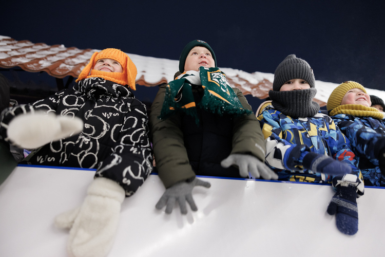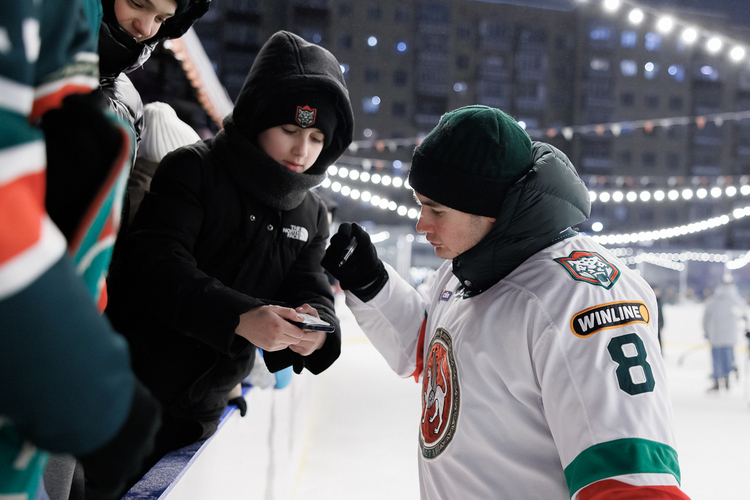 Альберт вовсю раздавал автографы. Чтобы еще и сделать фото, детей выпускали на лед через калитку, а после съемки они возвращались через борт — из рук Яруллина в руки родителей.