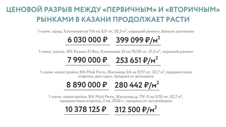 От этого разрыва страдают не только покупатели, но и сами застройщики — к ним не доходит часть покупателей. В такой ситуации сложнее поменять свою квартиру в старом фонде на новостройку, т. к. потребуется большая сумма для доплаты при обмене. В Казани относительная разница между стоимостью однокомнатной хрущевки и новостройки от застройщика составляет 44,4%, а между квартирой от дольщика в сданном, только что построенном доме и новостройкой от застройщика, сдающейся в 2026 году, — 15,5%
