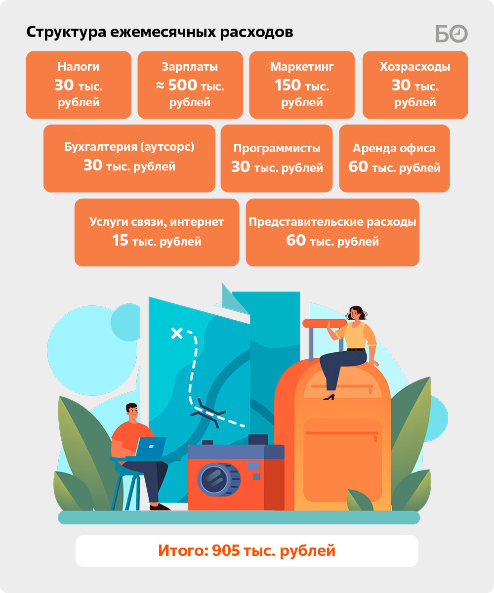 Когда мы только вышли на рынок, использовали всевозможные каналы продвижения: туристические агрегаторы («Спутник», Tripster), давали рекламу в «Яндексе» и Google, разрабатывали брендбук и полиграфическую продукцию, чтобы оставлять ее в лобби отелей, продвигались через блогеров. В самом начале на рекламу и продвижение мы тратили порядка 25 тыс. рублей, с ростом компании росли, соответственно, расходы на маркетинг. Это та статья затрат, которую не нужно урезать по возможности. Сейчас затраты на рекламу составляют порядка 150 тыс. рублей в месяц, в основном это реклама в интернете, ВК, SEO-оптимизация сайта.