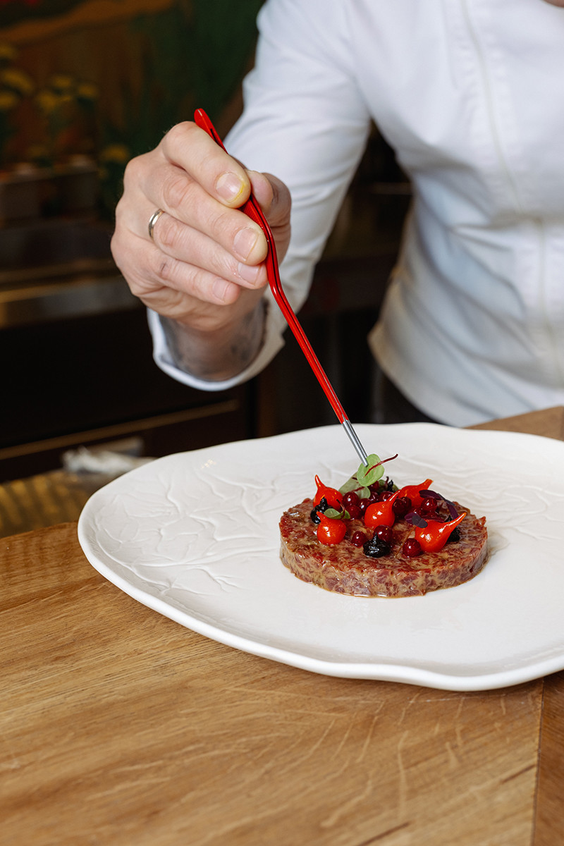 — Мы сохранили дух и уважение к локальным продуктам — конине, утке, ягненку, но представили их в абсолютно новом, современном ключе. Сейчас у нас авторская кухня с национальным акцентом. Например, тартар из телятины с кремом из ферментированного чеснока, брусникой и перцем бикиньо — такое сочетание создает взрывной вкус, такого я еще в Казани не видел! Или возьмем классику — вителло тоннато, ростбиф с нежным соусом из тунца. Но я его заправляю апельсиновым лечо. Пробовали когда-нибудь?