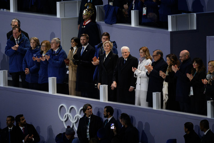А кто захотел сидеть с Вэнсом? Слева от него расположился прежний глава МОК Томас Бах, а справа — новый президент комитета Крис Ковентри, президент Италии Серджо Маттарелла и премьер-министр Джорджа Мелони. (Фото: Emma Wallskog, Keystone Press Agency, globallookpress.com)