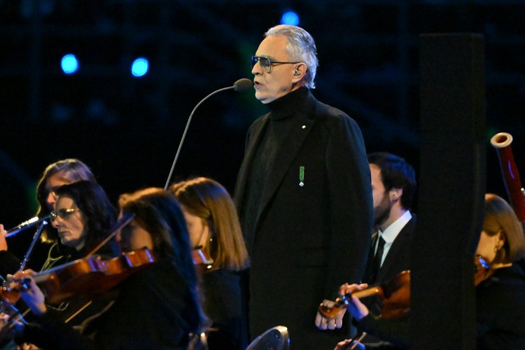 После этого на сцену вышел выдающийся оперный певец Андреа Бочелли. Это иностранцы пришли сюда за Кэри, а итальянцы хотели послушать именно его. Бочелли слепой с 12 лет, он перенес 27 операций на глаза. Пока он пел, на стадионе прошла завершающая часть эстафеты олимпийского огня: легенды итальянского футбола Франко Барези и Джузеппе Бергоми передали факел волейболисткам сборной Италии, те — волейболистам сборной, а они вообще ушли со стадиона. Вскоре стало понятно куда. (Фото: Peter Kneffel, dpa, globallookpress.com)