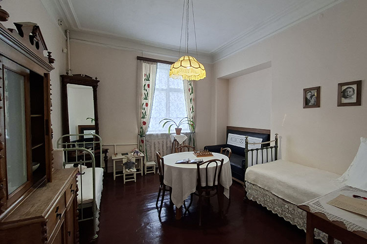 Яркий пример того, как скромно сегодня в нашей жизни представлен Джалиль, — это его музей-квартира (филиал Нацмузея РТ) в центре Казани. Он находится в обычной сталинке на улице Горького, 17, с обшарпанными стенами в подъезде. Здесь поэт жил с октября 1940-го по июль 1941 года. Чтобы попасть туда, нужно предварительно записаться. В музее по телефону сообщили, что в феврале посетителей принять не смогут — запись забита до марта. Однако корреспонденту «БИЗНЕС Online» все же удалось попасть внутрь, позвонив в домофон. В музее больше никого не было, и в течение часа никто из посетителей не появился, хотя нас заверили, что вот-вот должна подойти целая группа.