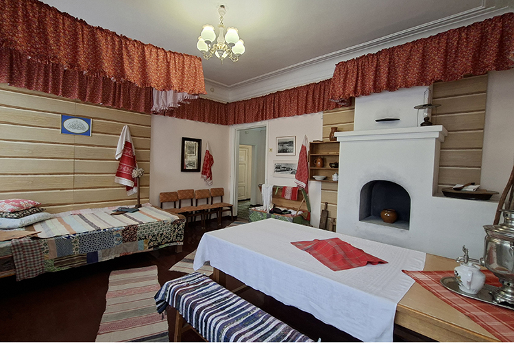 Стоит отдать должное сотрудникам, которые встречают посетителей как дорогих гостей и с большим энтузиазмом проводят небольшой экскурс по музею на 130,8 «квадрата». Семья Джалиля занимала две комнаты в трехкомнатной коммуналке. В помещении, принадлежавшем соседям, создана экспозиция «В гостях у Мусы», которая воссоздает обстановку родного дома поэта в селе Мустафино Оренбургской области. В кабинете Джалиля хранятся его мандолина, книги, первый прижизненный бюст, а в зале — шахматы, рукопись стихотворения, посвященного жене Амине, и открытка, отправленная дочери Чулпан 9 марта 1942 года на пути к Волховскому фронту.