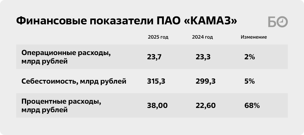 Несмотря на падение основных показателей, коммерческие расходы предприятия увеличились. Если в 2024-м КАМАЗ отобразил 9,7 млрд рублей таких расходов, то в 2025-м — на 0,5 млрд больше —10,2 млрд рублей. Управленческие расходы остались на уровне 2024 года — 13,4 млрд рублей.