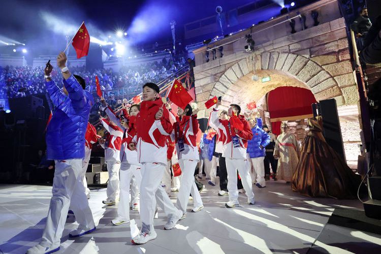 Итальянцы на правах хозяев открывали парад. Как обычно это бывает у хозяев, у них хороший медальный улов — 10 золотых, 6 серебряных, 14 бронзовых. Если на прошлой Олимпиаде у Италии было 17 наград, то теперь их 30. У них 4-е место в зачете. Было бы у Италии чуть больше «серебра», они бы сместили с 3-го места Нидерланды (у них тоже 10 золотых, но 7 серебряных). (Фото: Wang Kaiyan, XinHua, globallookpress.com)