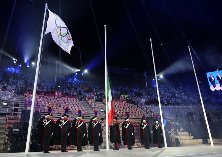 Высоких гостей на церемонии не было. Только руководство Италии и президент МОК Кирсти Ковентри. (Фото: Claudio Furlan, Keystone Press Agency, globallookpress.com)