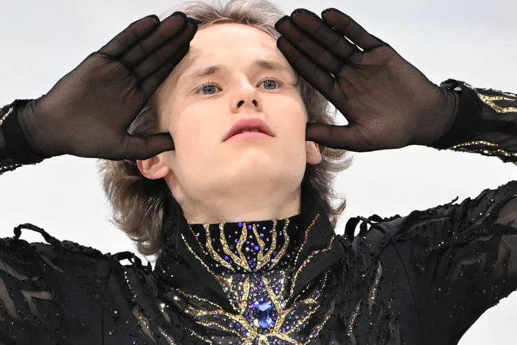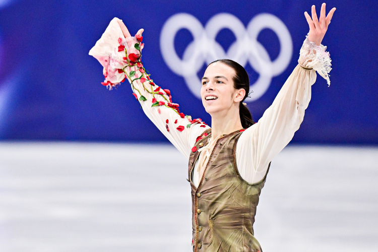 Единственному допущенному фигуристу из России Петру Гуменнику не так повезло. В короткой программе его заставили поменять музыку, а в произвольной значительно урезали баллы за технику и хореографию. Хотя он чисто прыгнул аж пять четверных. Зато Гуменник увез приз зрительских симпатий: его костюм Парфюмера был признан лучшим читателями итальянского Vogue. (Фото: Raniero Corbelletti, AFLO, globallookpress.com)
