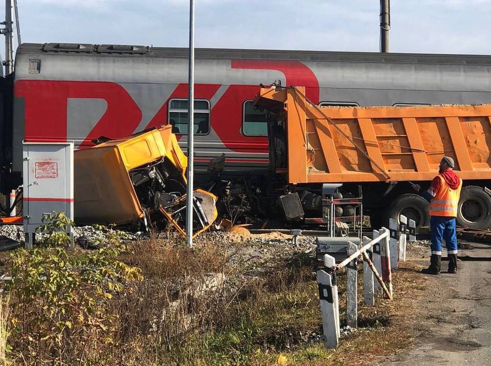 Сегодня водитель грузовика выехал на переезд перед приближающимся поездом, следовавшим по маршруту Казань — Петербург. Машинист поезда экстренное затормозил, однако столкновения избежать не удалось. По предварительной информации, локомотивная бригада и пассажиры поезда не пострадали и за медицинской помощью не обращались.