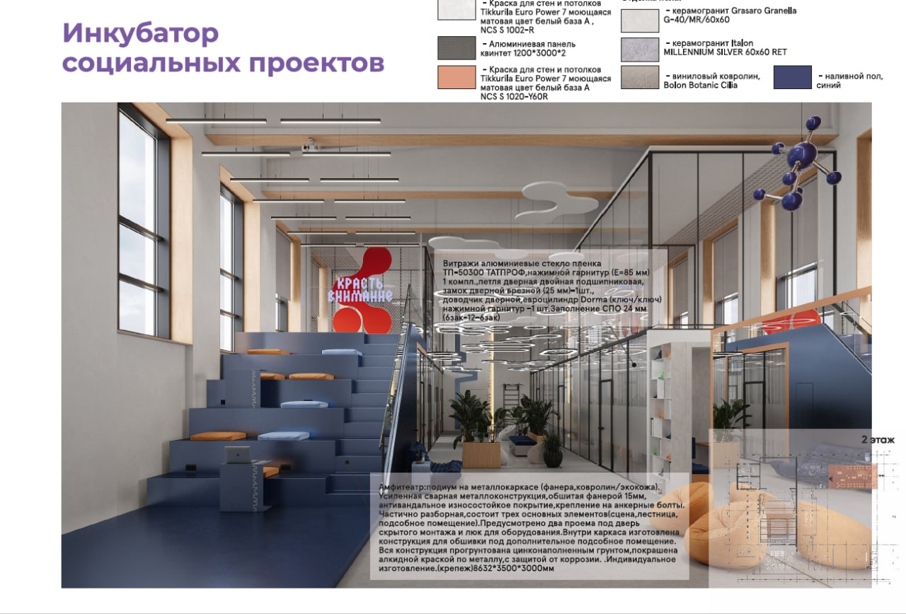 На базе Дворца культуры будут действовать арт-резиденция, художественная и гончарная мастерские. Появится оборудование для создания небольших предметов декора, работы с пластиком и тканью. Также появятся гримерки, переговорные помещения, кухня, гончарная и рабочие кабинеты.