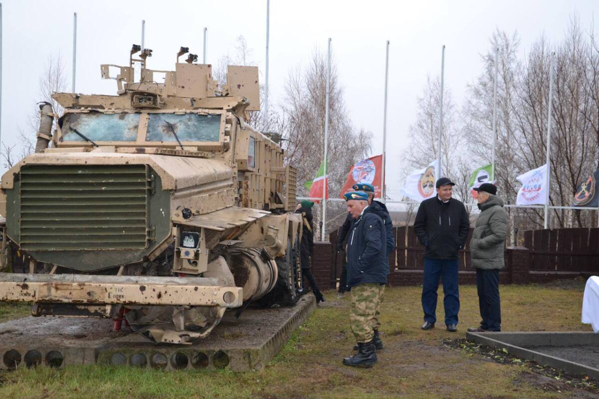 Мероприятие продолжилось на территории придорожного кафе «Алга», где открыли выставочную площадку «Защитникам Отечества память и слава!». Ее центральным экспонатом стал британский бронеавтомобиль «Мастифф», подбитый бойцами 116-й отдельной бригады особого назначения. Командир группы с позывным «Светлый» уничтожил эту машину во время ротации бойцов ВСУ. «Этот трофей не просто экспонат музея, он свидетель героизма наших солдат и доказательство того, что победа будет за нами!» — отметил и. о. главы Нурлатского района Иван Захаров. По словам руководителя нурлатского отделения ассоциации ветеранов СВО Артура Кабирова, экспозиция будет постоянно пополняться новой трофейной техникой с фронта.