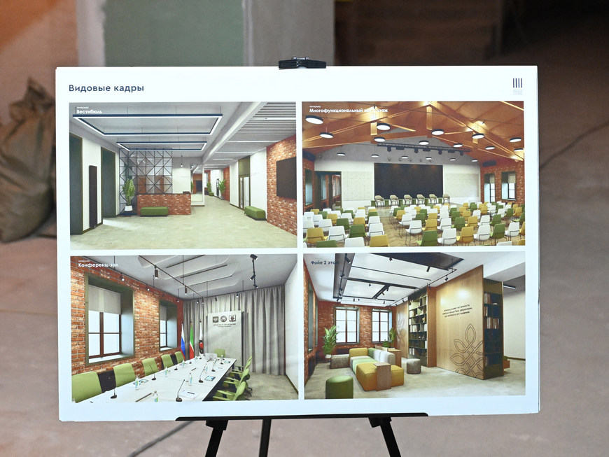 Двухэтажное здание площадью 950 кв. м предусматривает многофункциональное пространство с конференц-залом, актовым залом-трансформером, творческими лабораториями и студией для записи подкастов. Особое внимание уделено техническому оснащению: профессиональные интерактивные панели, LED-экраны и системы видеоконференцсвязи.