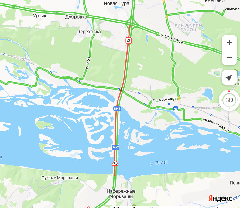 Отметим, что пробки на этом участке периодически возникают из-за ДТП. Так, например, пробка на мосту через Волгу в июне этого года достигала 8 километров.