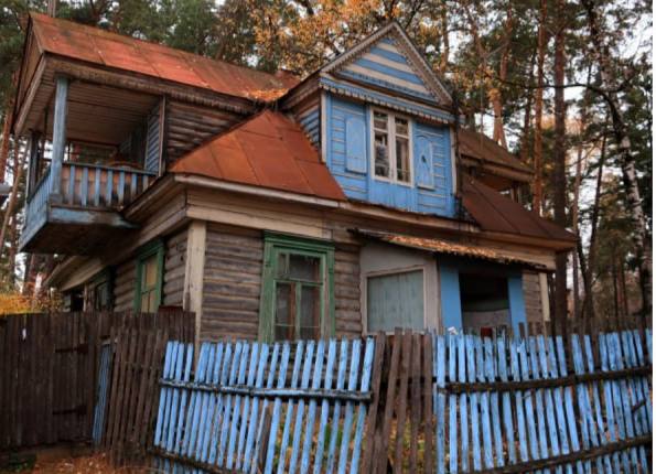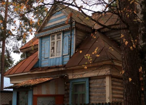 Сам культурный объект — это деревянный одноэтажный дом, расположенный на отдельном участке через дорогу от санаторного комплекса. Постройка дачного типа выполнена в стиле классицизма, а в декоративном оформлении использованы приемы из народного творчества. Здание завершает четыре мезонина с пересекающимися двускатными крышами. Основной вход организован через пристроенные сени, а другой вход размещен с противоположной стороны. Наличники прямоугольных окон украшены накладной резьбой. Стены мезонинов размещены с небольшим отступом вглубь, поэтому балконы перед мезонинами врезаны в крышу. Выступающую часть каждого фронтона поддерживает два столба по углам балкона.