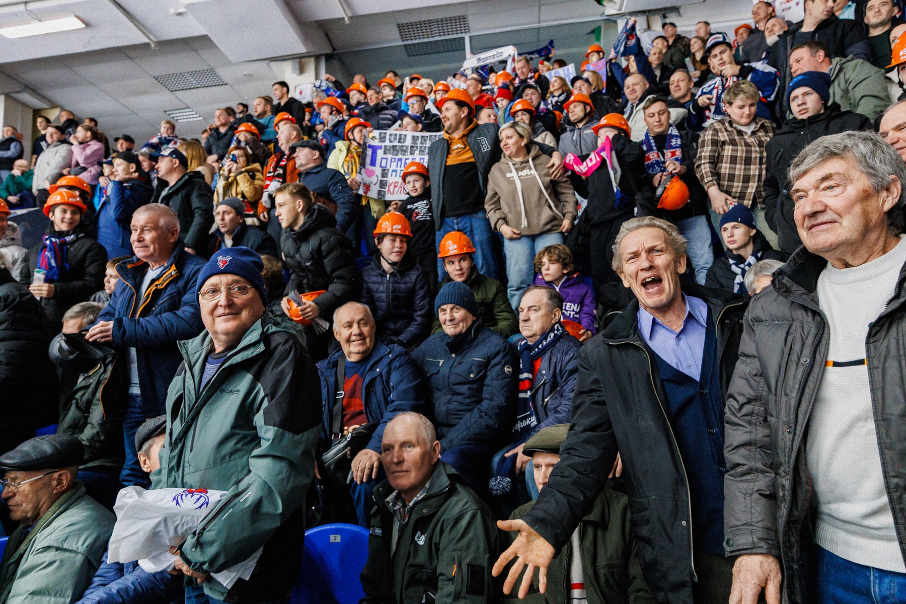 На самих матчах на арене царила особая атмосфера: болельщики, включая сотрудников завода, пришли на трибуны в рабочих касках и спецодежде. Спортсмены, тренеры и даже комментатор также были в заводской форме, демонстрируя тем самым глубокое уважение к труду металлургов. Праздничное настроение задало и почетное вбрасывание, которое в первой игре серии выполнил генеральный директор ОМК Анатолий Седых.