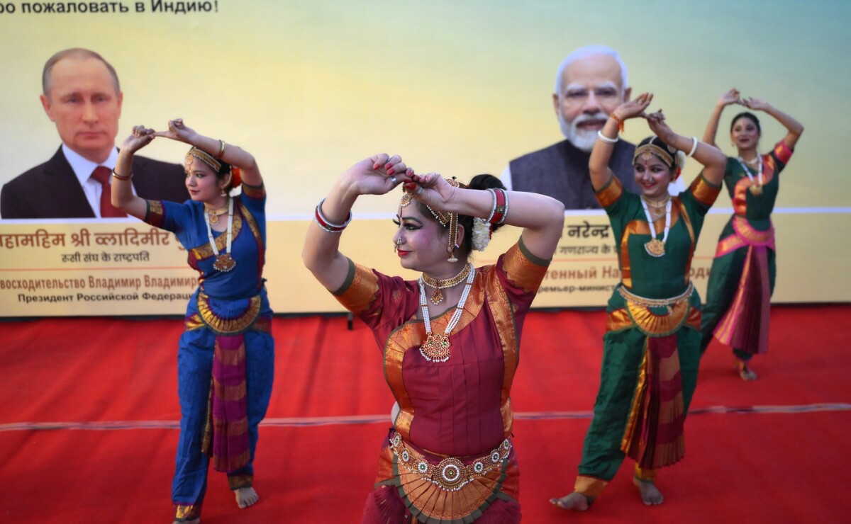 Президентский самолет приземлился на военной авиабазе Палам в Нью-Дели, где для российского лидера подготовили торжественную встречу. У трапа расстелили красный ковер, выстроили почетный караул, подняли флаги России и Индии. Девушки в традиционных индийских сари исполнили национальный танец, приветствуя российского президента.