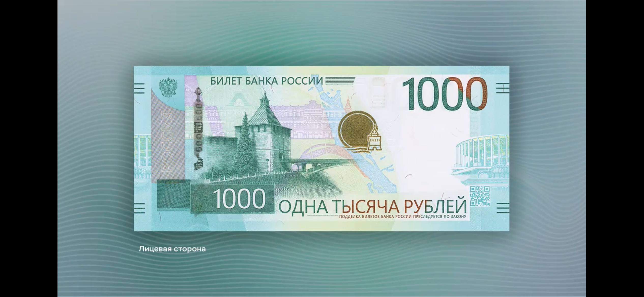 На лицевую сторону модернизированной тысячерублевки нанесли Нижегородский кремль, а на фон — место встречи рек Волги и Оки. На оборотную — Дворец земледельцев. Новую купюру на брифинге Центробанка представил зампредседателя регулятора Сергей Белов. Отмечается, что банкнота появится в обращении через 1–1,5 года.