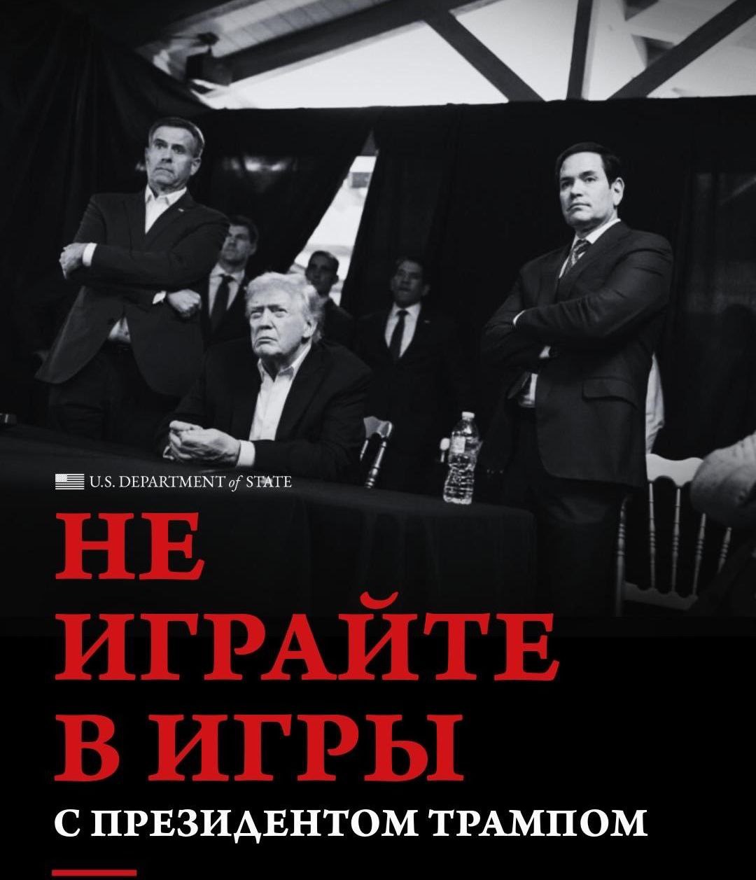 Госдепартамент США опубликовал несколько постов с изображением президента Соединенных Штатов Дональда Трампа, в одном из которых он призывает «не играть в игры» с ним. Публикацию представили в нескольких вариантах: надписи на фото перевели на русский язык и фарси.