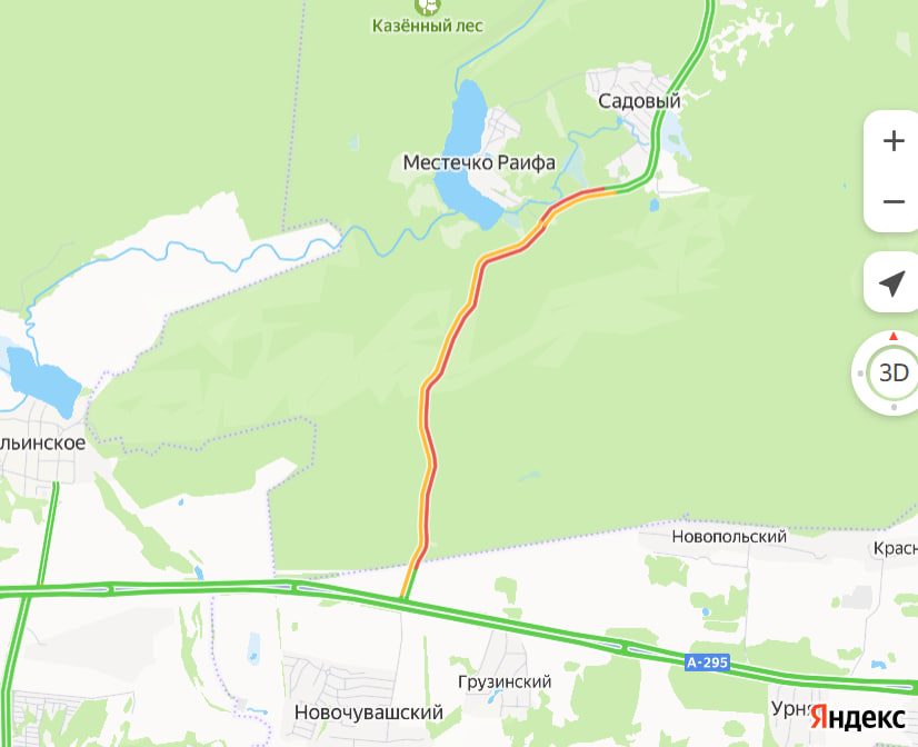 В Зеленодольском районе Татарстана образовалась большая пробка в сторону Раифского монастыря. Длина затора в этом направлении составляет 4 км, свидетельствуют данные сервиса «Яндекс.Карты».