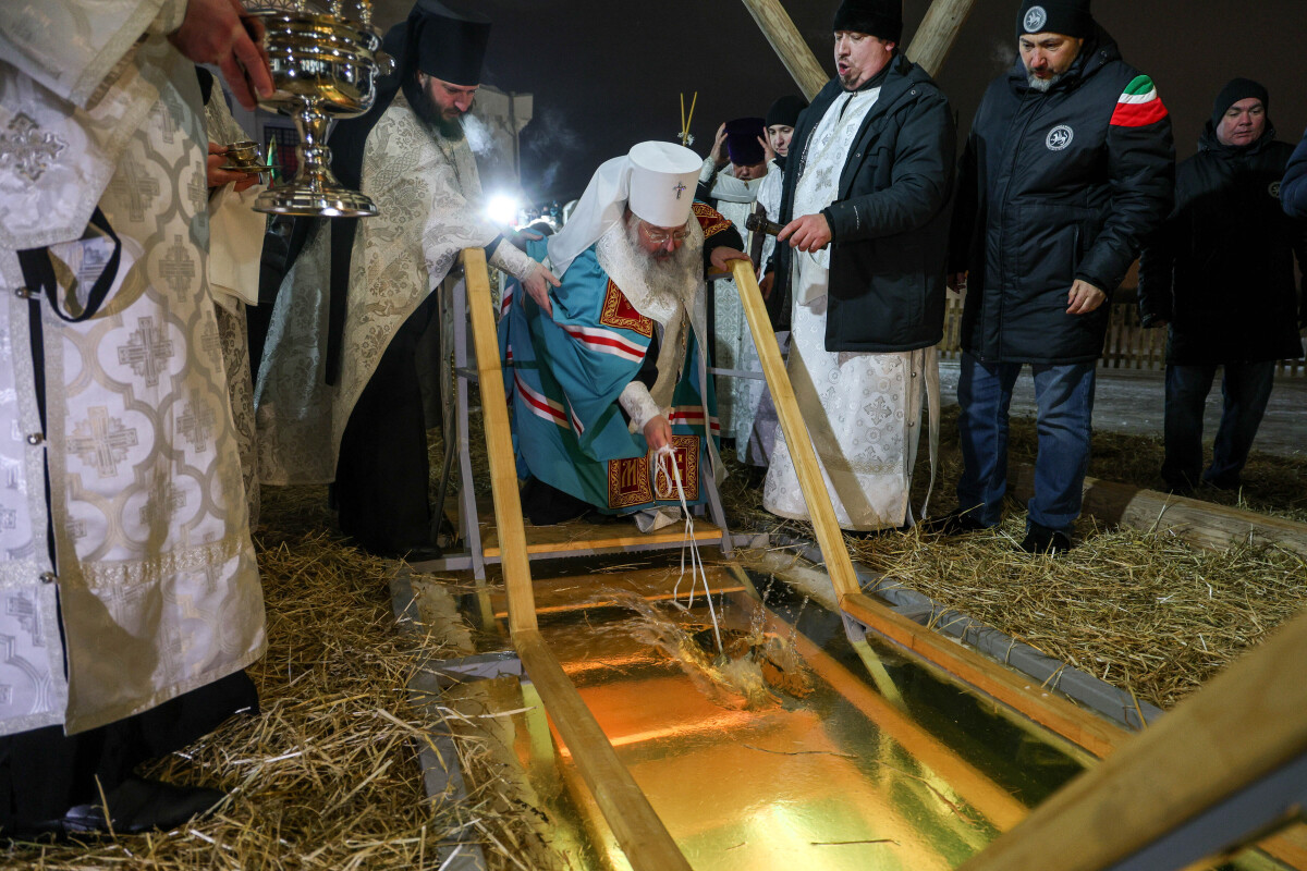 «В этом году по благословению митрополита решили сделать здесь благоустроенную, хорошую, красивую купель с деревянными элементами, с архангелами. Участвовали многие предприятия — и пороховой завод, и „Татэлектроприбор“, и частные предприниматели», — сообщил Коробченко. До 20:00 19 января для всех желающих будут организованы купания, горячий чай и угощения, которые предоставляют предприятия.