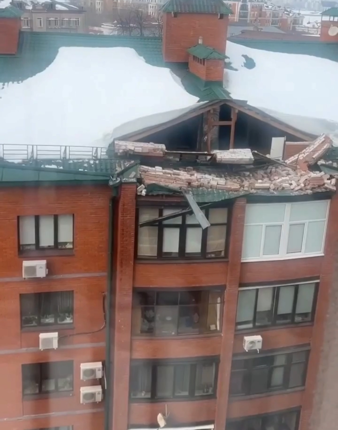Зима 2026 года стала одной из самых снежных в истории Татарстана: только в феврале выпали почти две месячные нормы осадков. Аномальные осадки создают давление до 700 кг на каждый квадратный метр кровли, сообщили ранее в мэрии. Под весом снега обрушились кровли нескольких жилых домов, детской поликлиники и складского помещения торговой сети «Магнит». 3 марта стало известно, что в Казанском кремле из-за потепления и обильных осадков в виде мокрого снега произошло частичное повреждение деревянной кровли.
