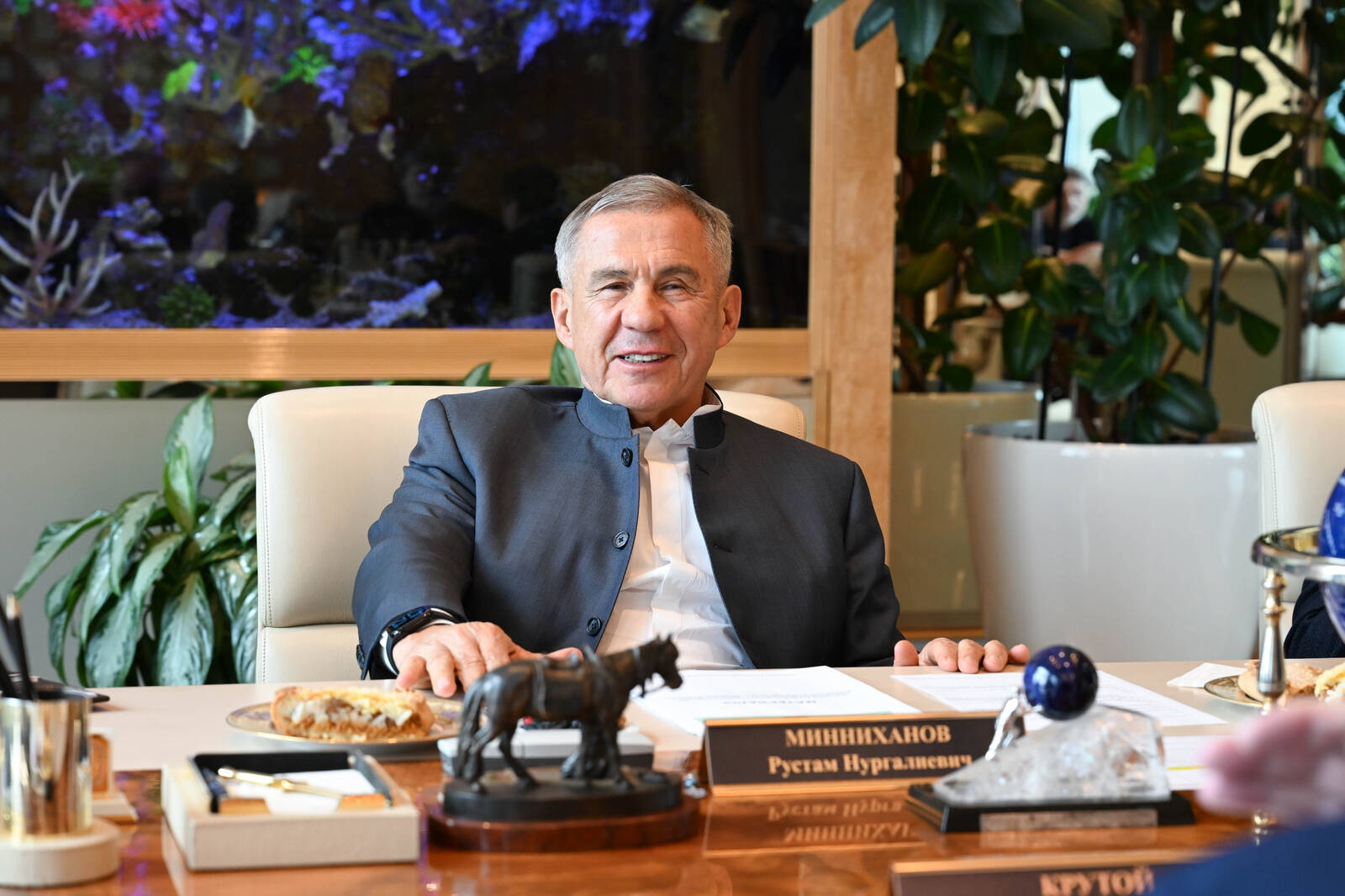 Глава Татарстана Рустам Минниханов встретился с народными артистом, основателем конкурса молодых исполнителей популярной музыки «Новая волна» Игорем Крутым. Встречу организовали в Доме правительства РТ, сообщает пресс-служба главы республики.